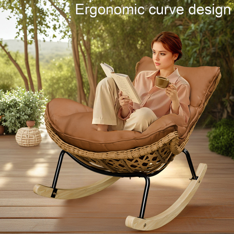Chaise oscillante de luxe intérieure et extérieure en rotin pour chambre à coucher, salon, porche, jardin, pelouse, etc.